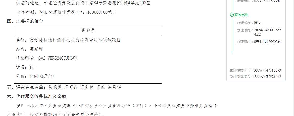 定远县检验检测中心检验检测专用车采购项目中标结果公告